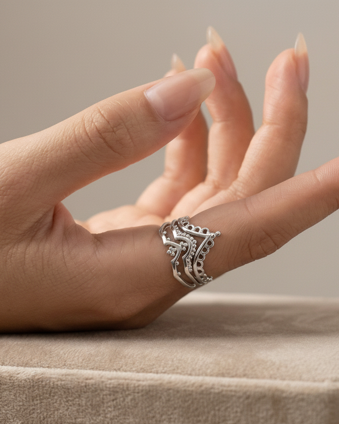 סט טבעות מדהים וייחודי כל כך, הרבה יותר יפה במציאות אפילו ממה שחשבתי! ואני הכי אוהבת שאפשר לשחק ולשנות אותו.. תודה נועה