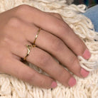 טבעת זהב אתנית ייחודית בעבודת יד, כמו קישוט יפהפה על היד, עדינה אבל מלאת נוכחות.
