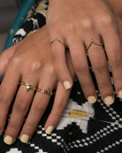 טבעת כסף אתנית ייחודית בעבודת יד עשויה כסף סטרלינג 925, ומשובצת באבן חן, בצורת כתר יפהפה על היד, עדינה אך מלאת נוכחות.