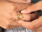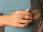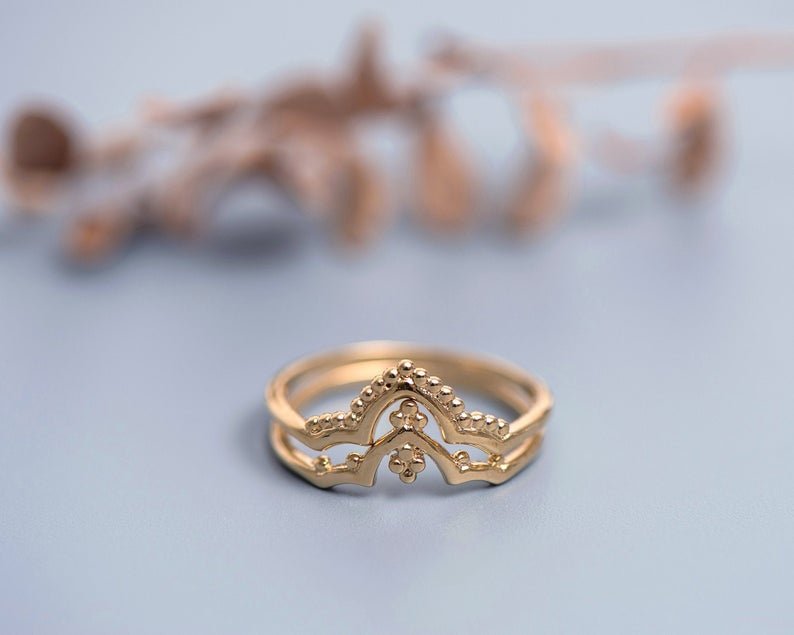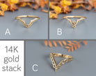 סט טבעות זהב אתניות, בצורת וי טרנדית, בסגנון בוהו-שיק. סט ייחודי בעבודת יד עשוי זהב 14K, שניתן לשלב על האצבע במספר אפשרויות, מלא נוכחות וסטייל.