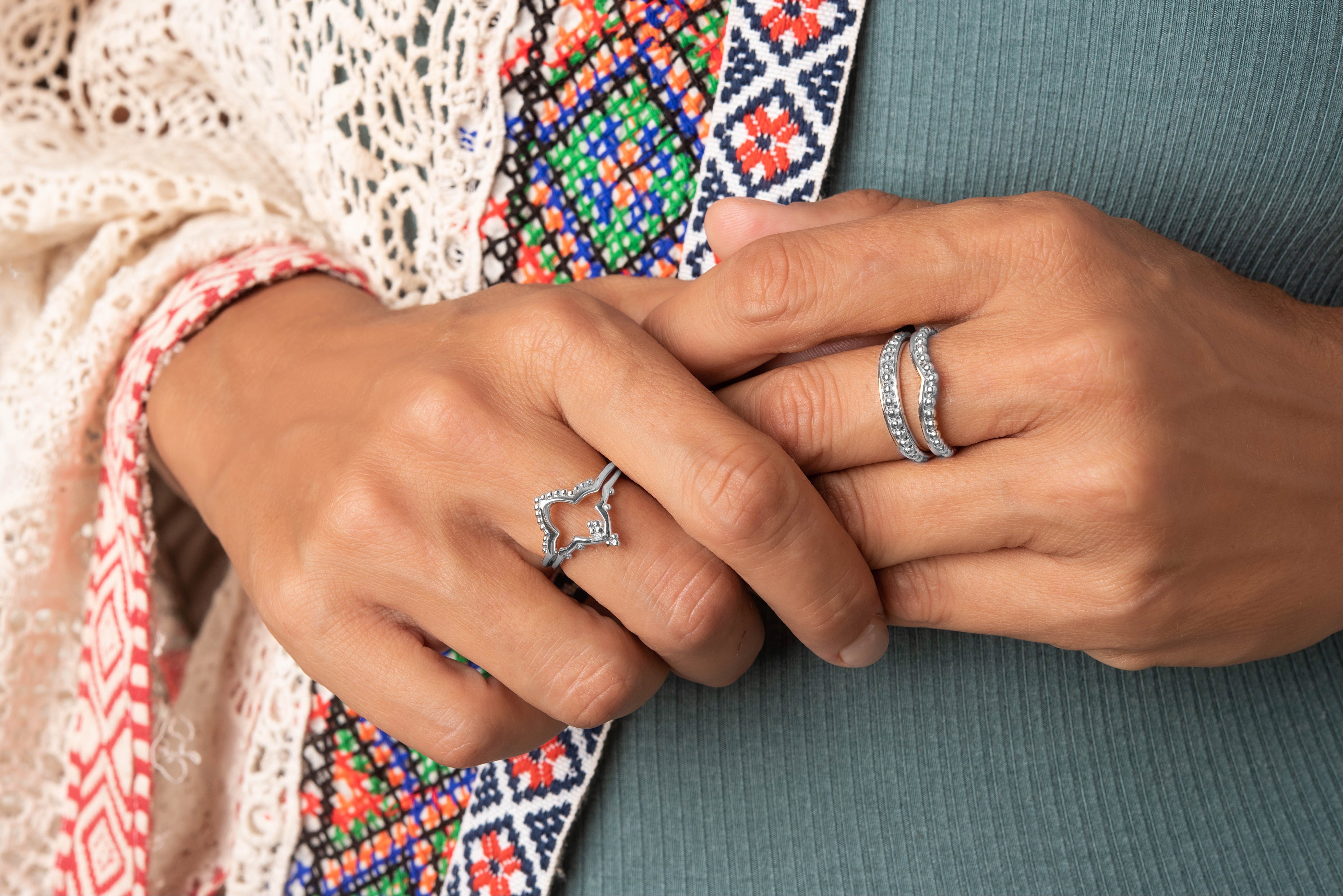 הטבעות משדרות אלגנטיות עדינה ויכולות להיענד בנפרד – ליצירת מראה נקי ומעודן, או יחד – ליצירת מראה שכבתי מלא אופי וסטייל.