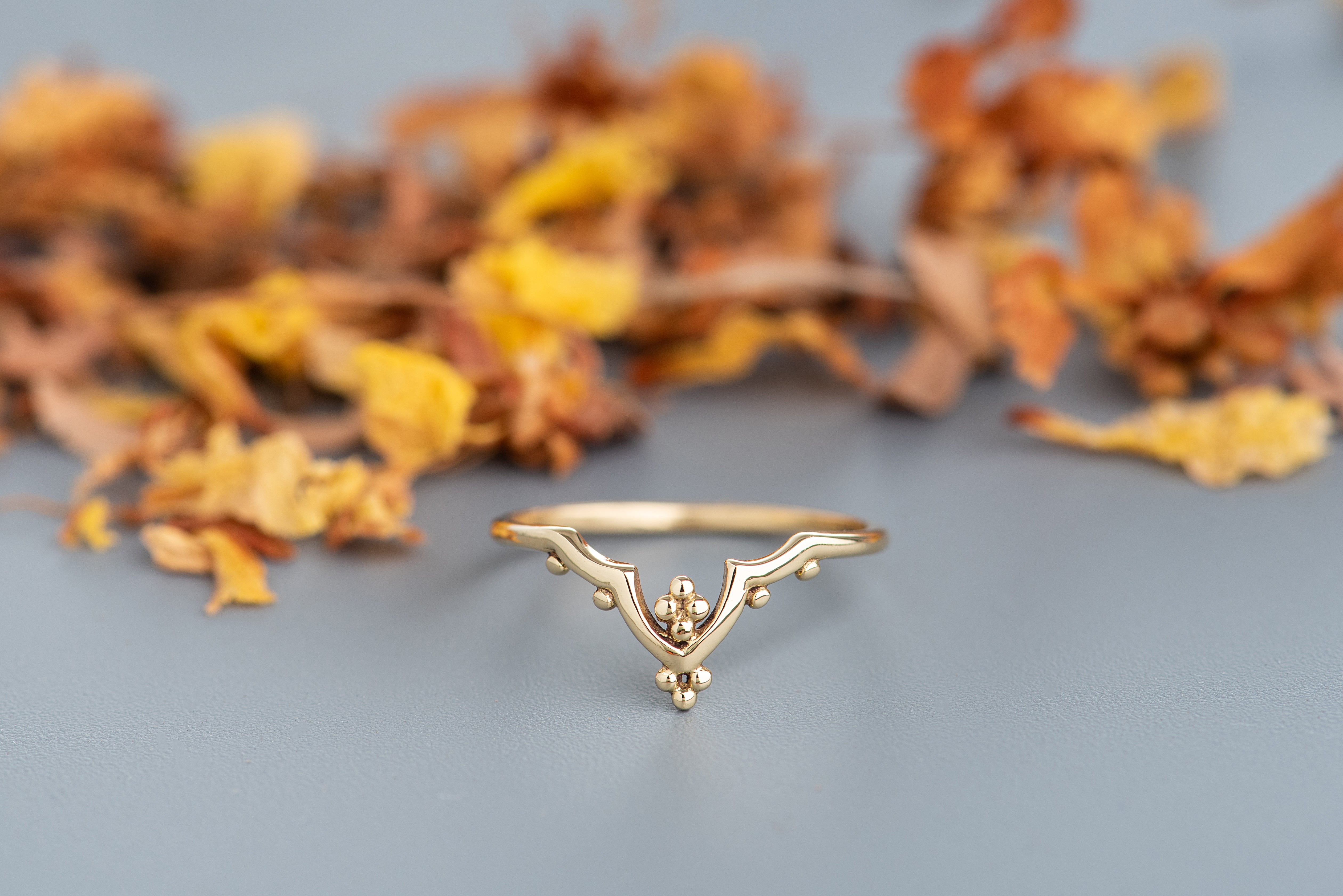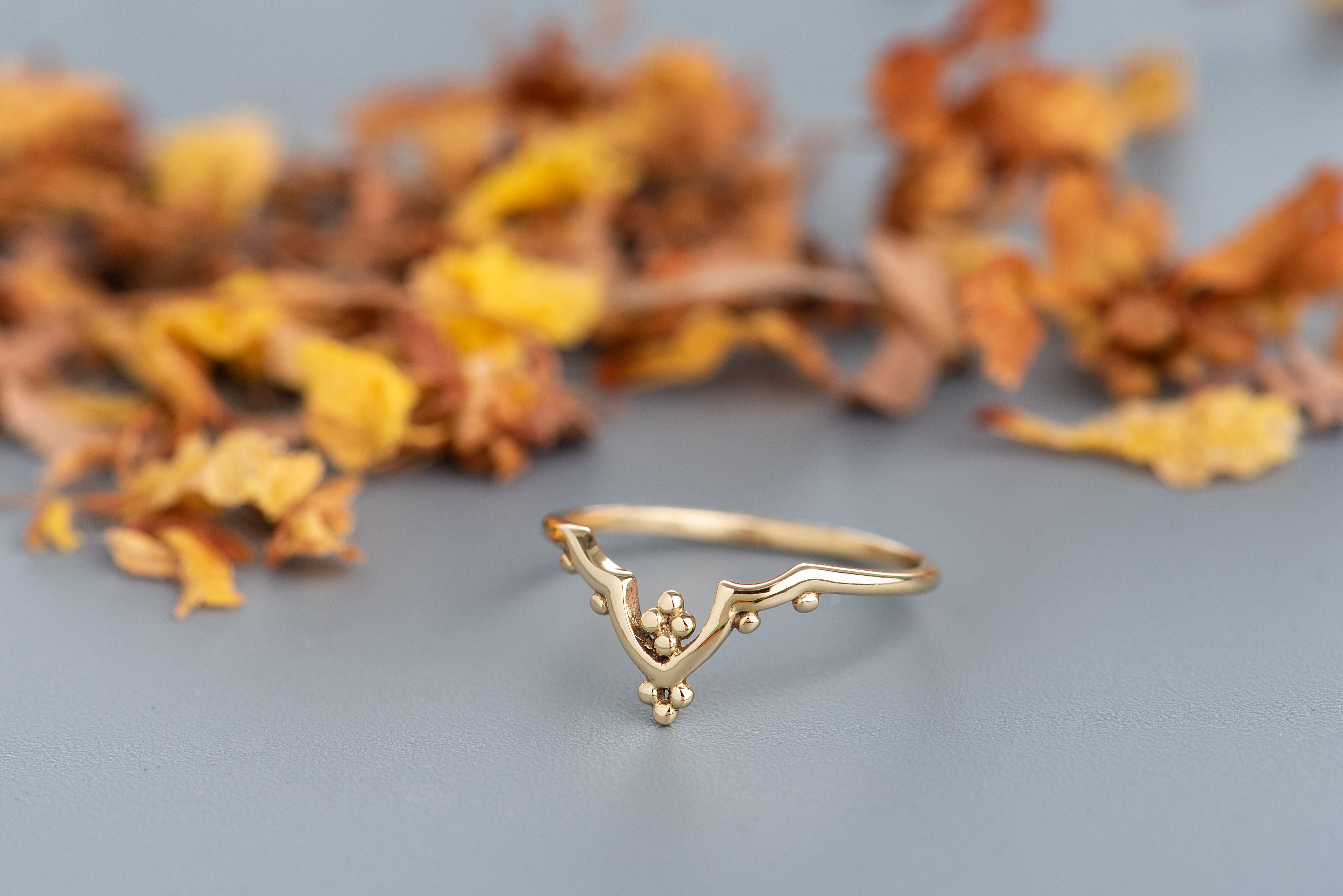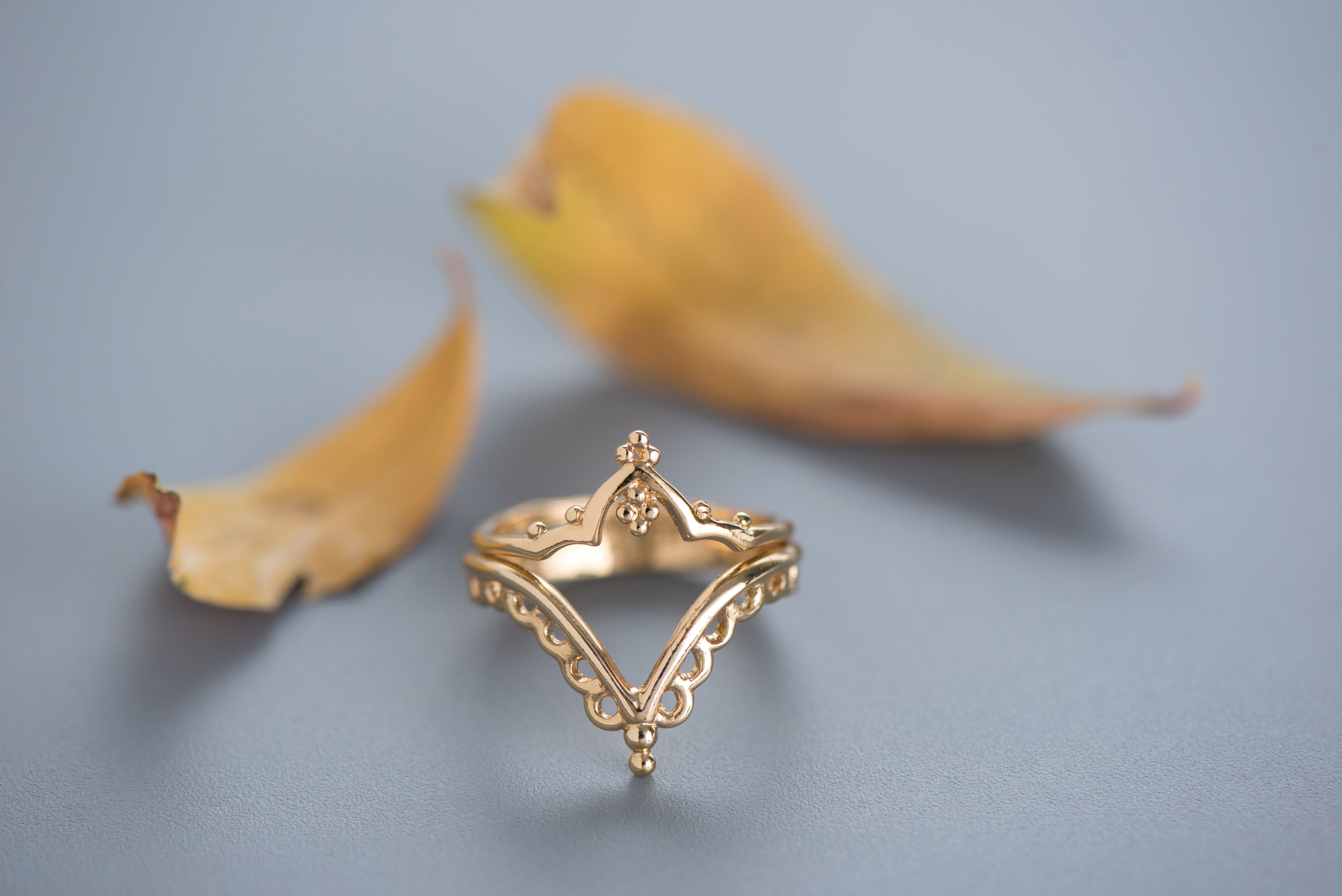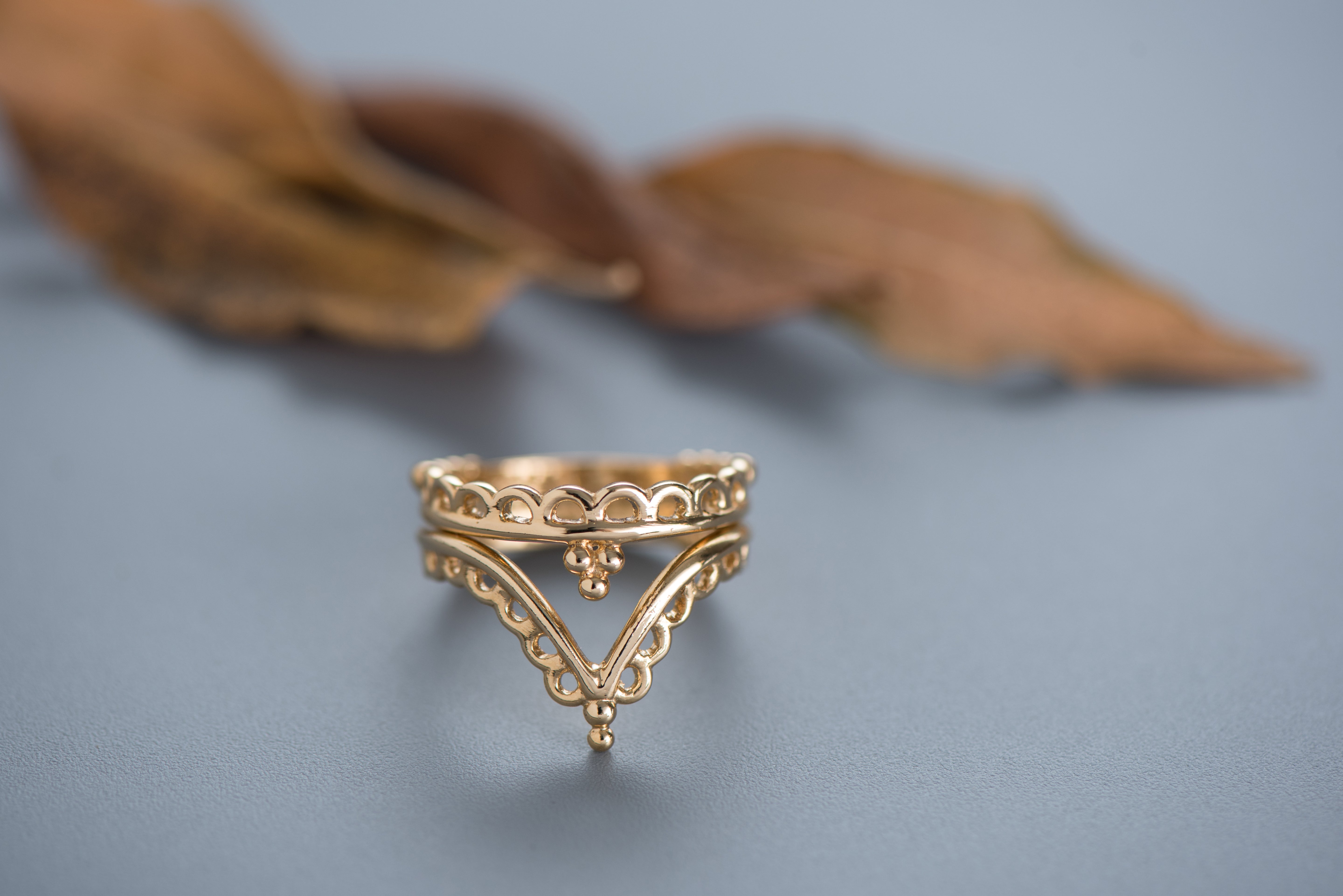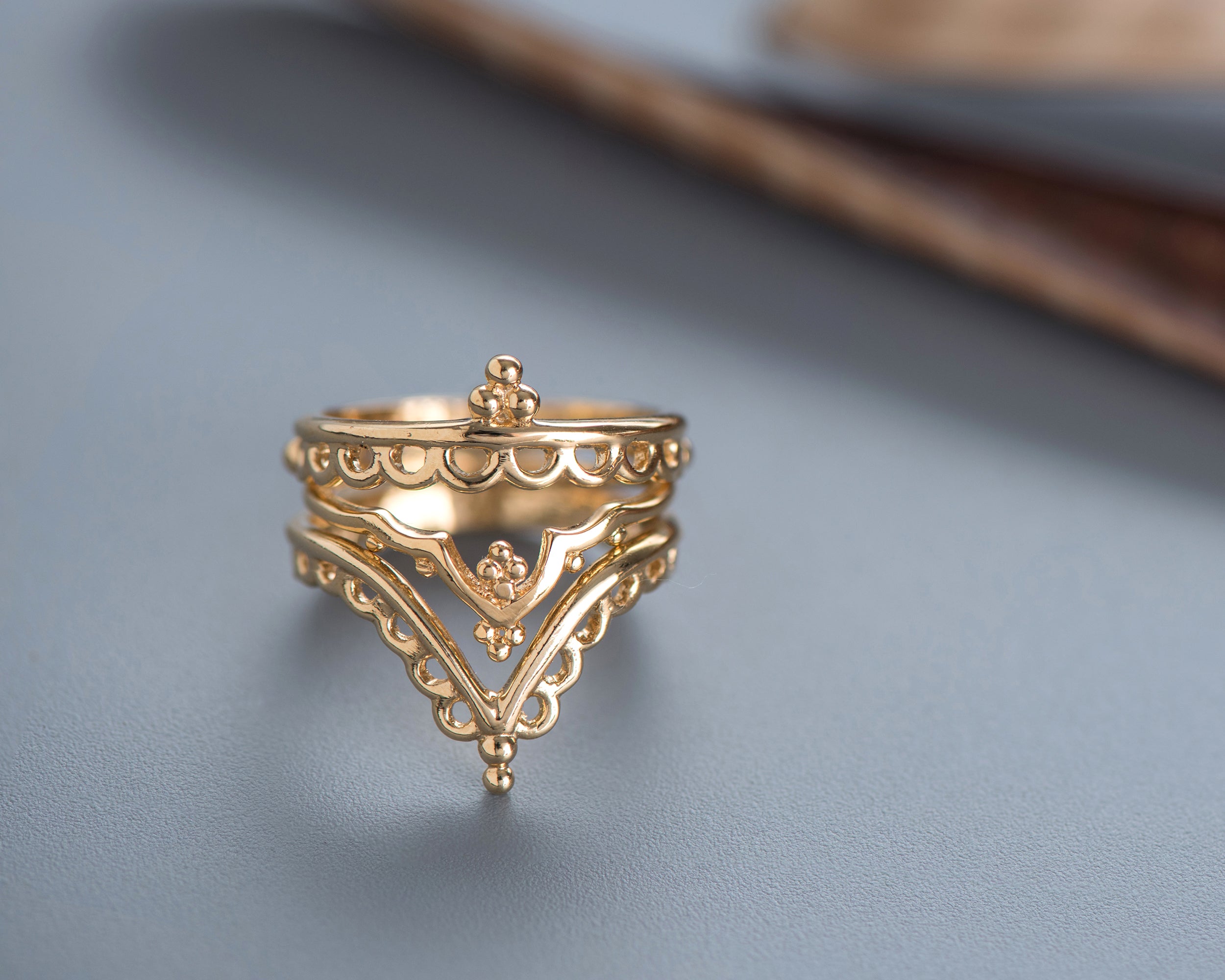 סט טבעות זהב אתניות, בצורת וי טרנדית, בסגנון בוהו-שיק. סט ייחודי בעבודת יד עשוי זהב 14K, שניתן לשלב על האצבע במספר אפשרויות, מלא נוכחות וסטייל.