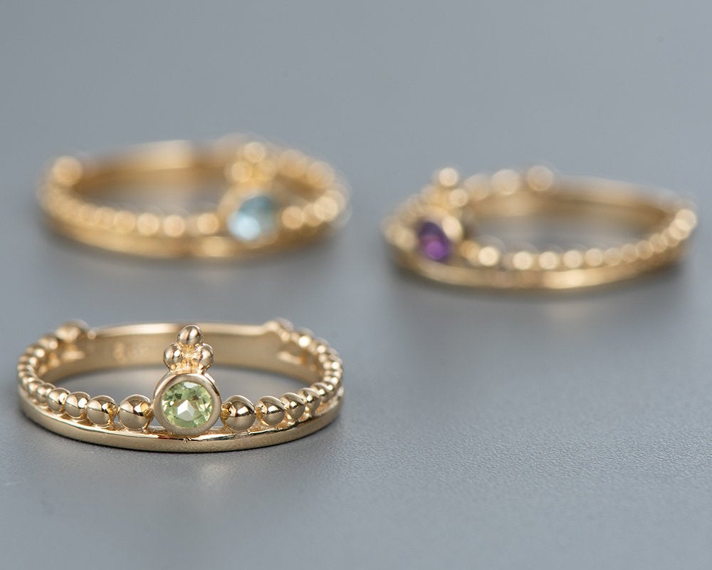סט טבעות עדינות וייחודיות לנשים, עשויות זהב 14K, בעיצוב בוהו-שיק מינימליסטי וקלאסי, משובצות אבן חן, לבחירה.