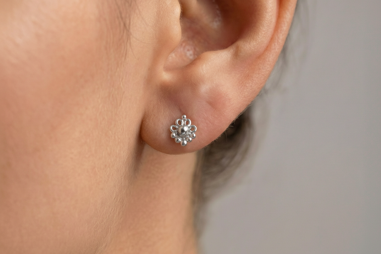 עגיל צמוד / פירסינג – עשוי זהב כסף 925 בעבודת יד.
