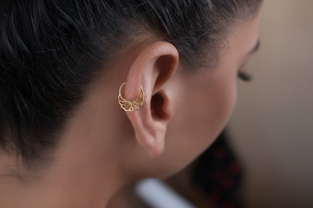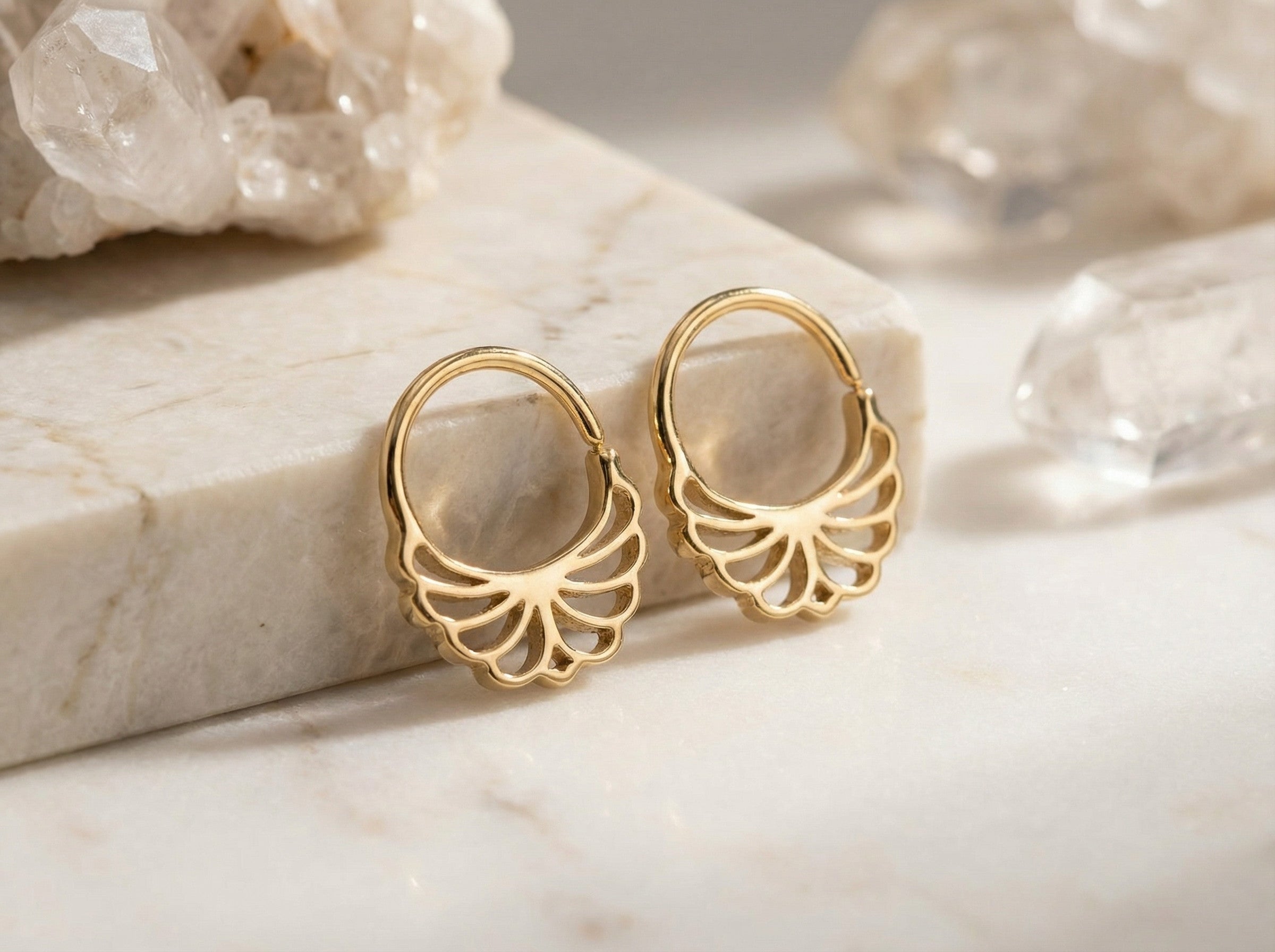 סט זוג עגילי חישוק, עדינים עשויים זהב 14K בעיצוב ייחודי ומרשים בעבודת יד.