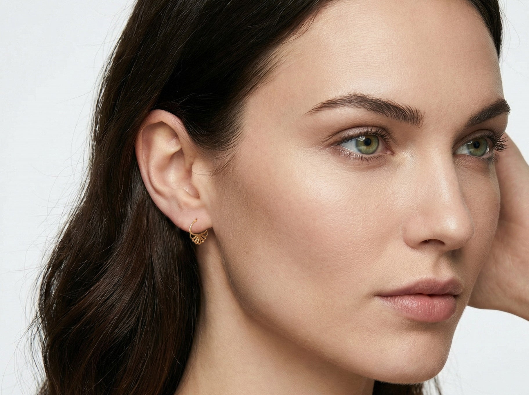 זוג עגילי חישוק בהשראת פרח הלוטוס בעבודת יד, עיצוב ייחודי עשוי זהב 14K.