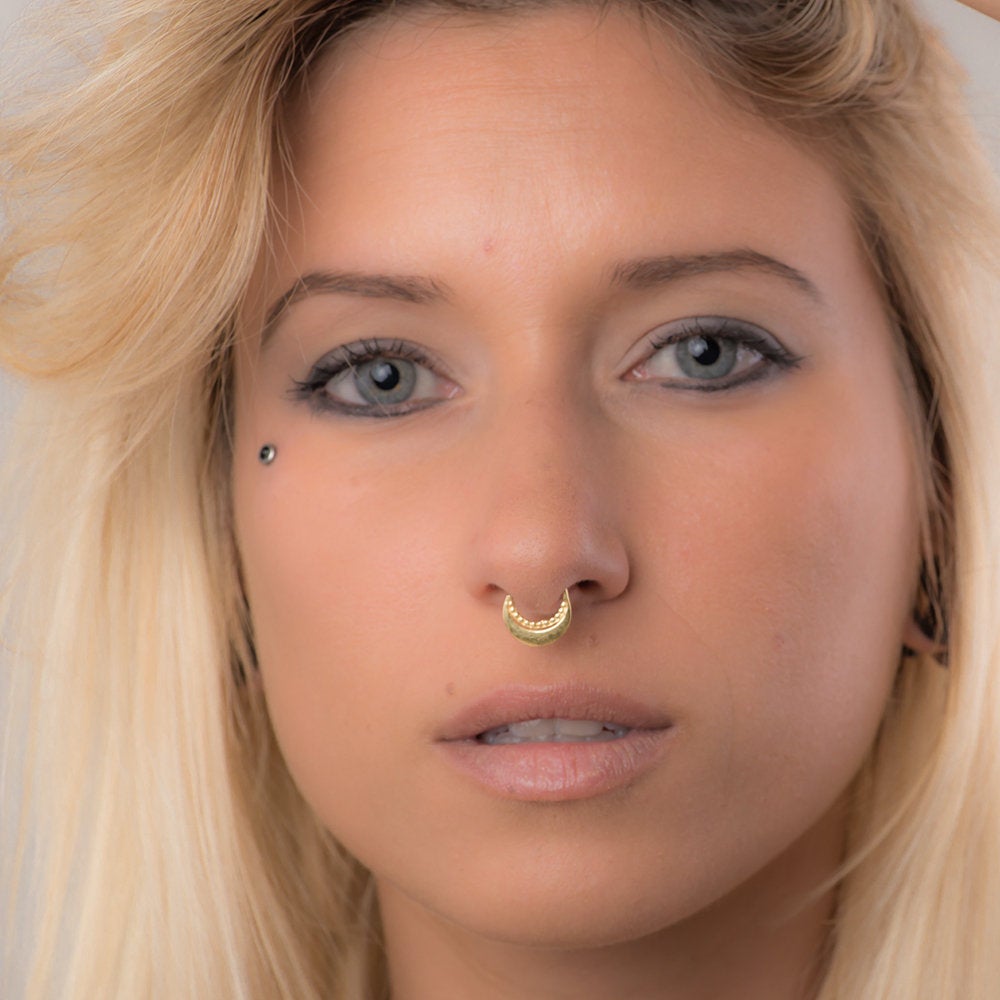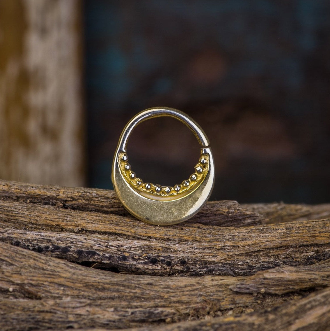 עגיל פירסינג חישוק / ספטום בעיצוב ייחודי ומרשים עם ציפוי זהב 24 קראט (על גבי כסף 925).