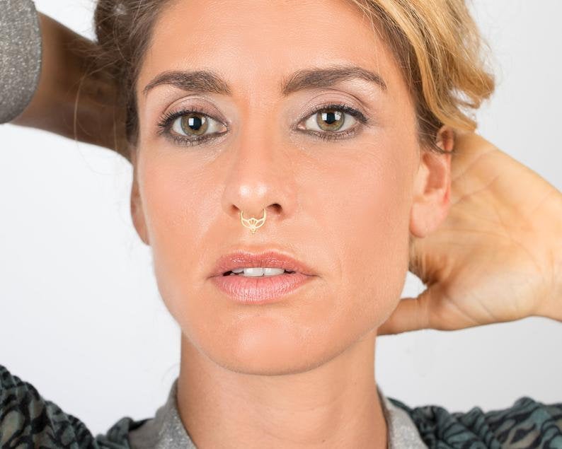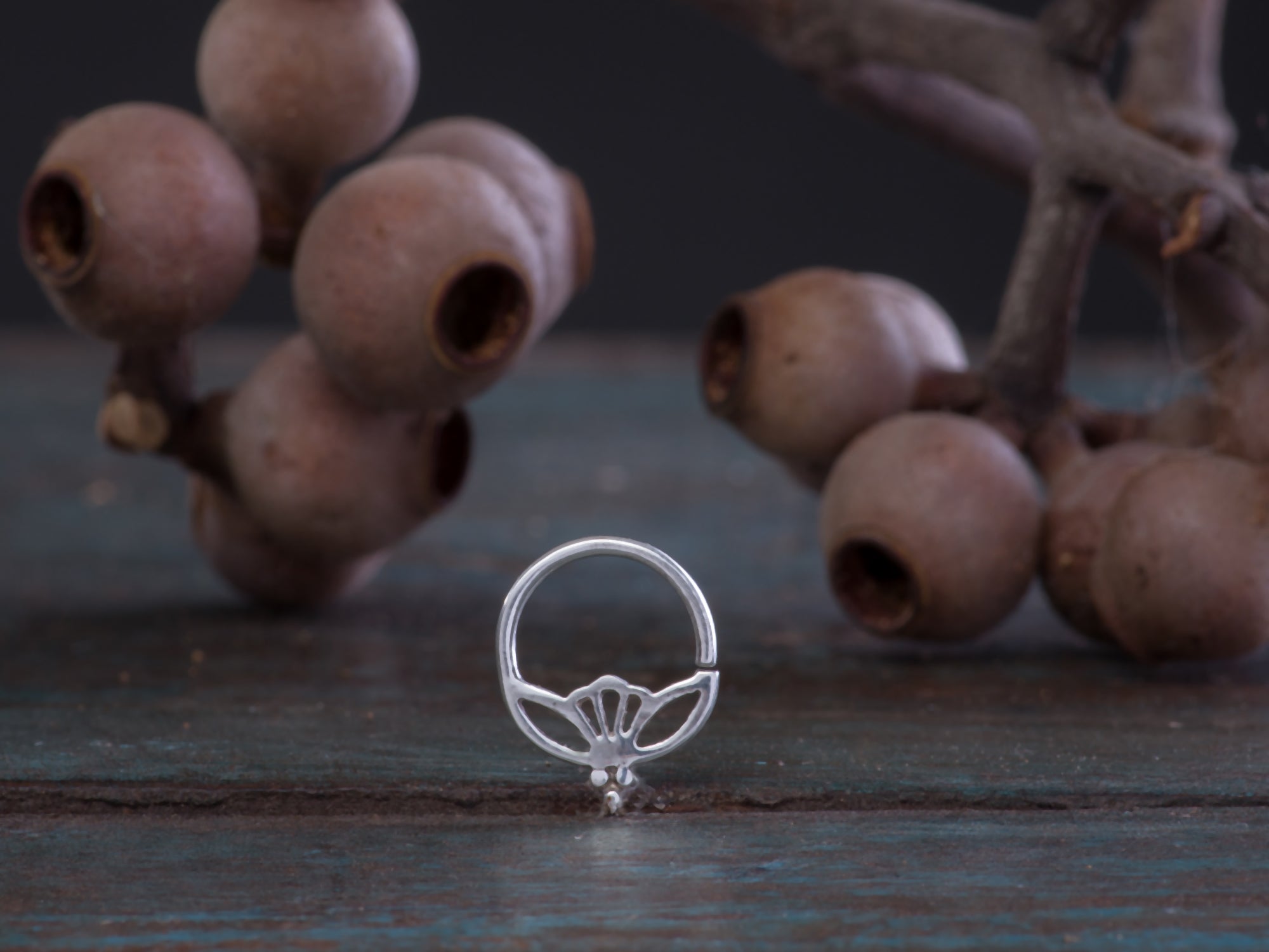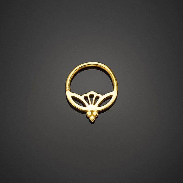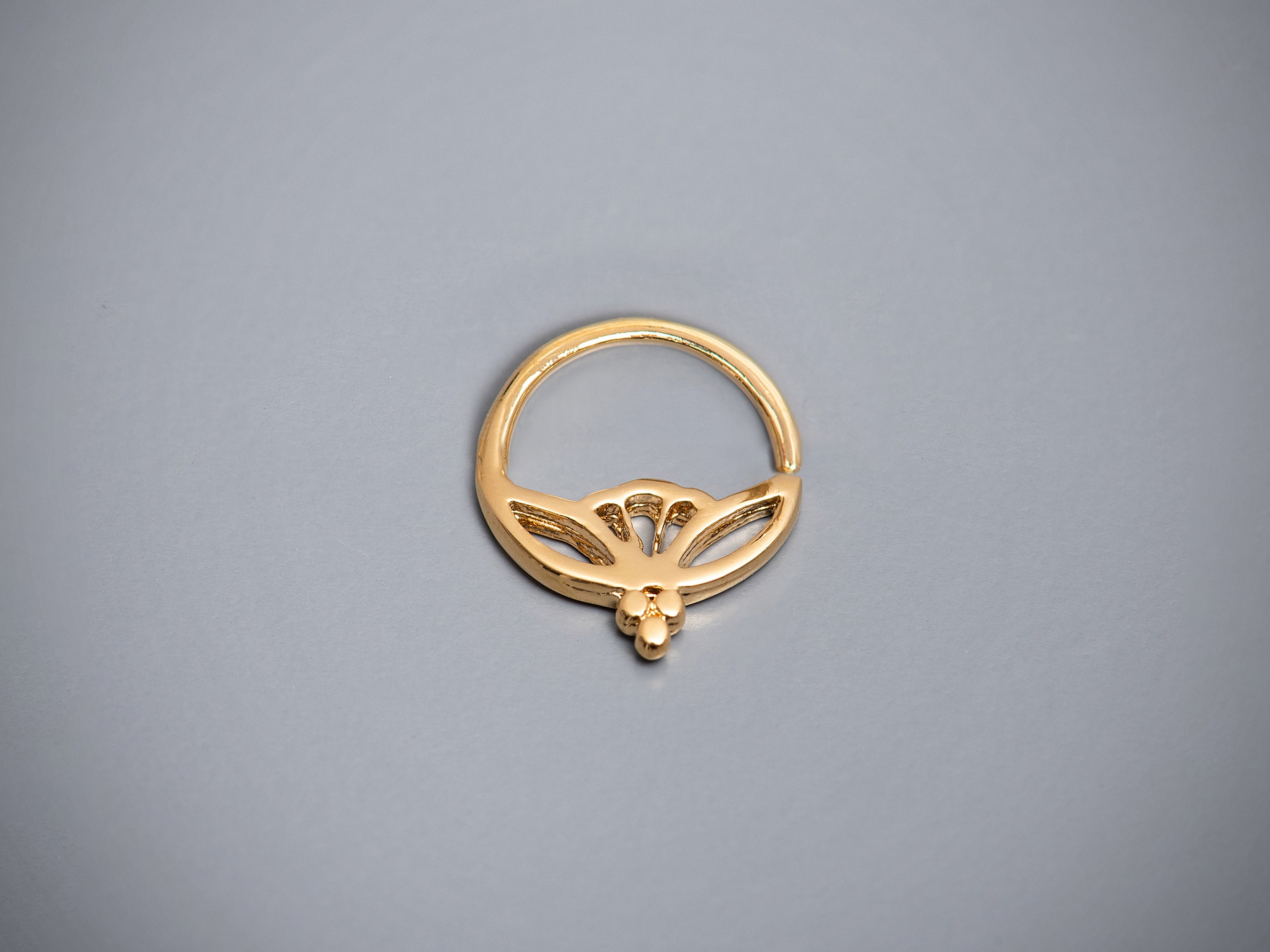 עגיל פירסינג חישוק / ספטום פרח לוטוס – עיצוב ייחודי ומרשים עם ציפוי זהב 24 קראט (על גבי כסף 925).