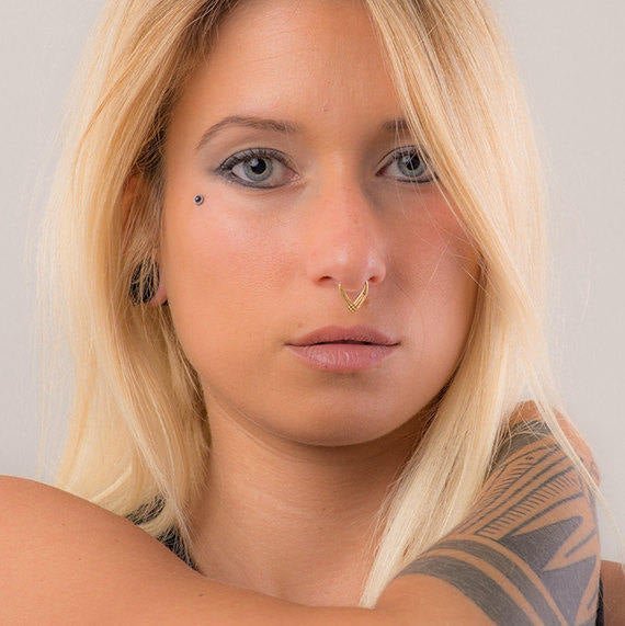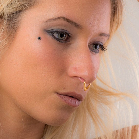 עגיל פירסינג חישוק / ספטום ייחודי ומרשים עם ציפוי זהב 24 קראט (על גבי כסף 925).