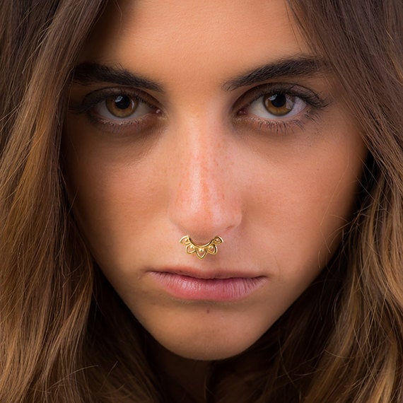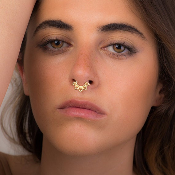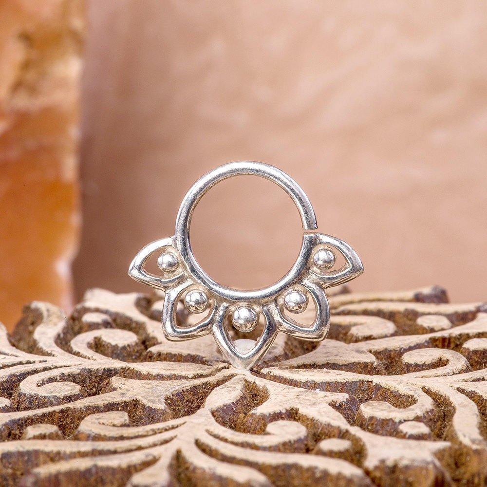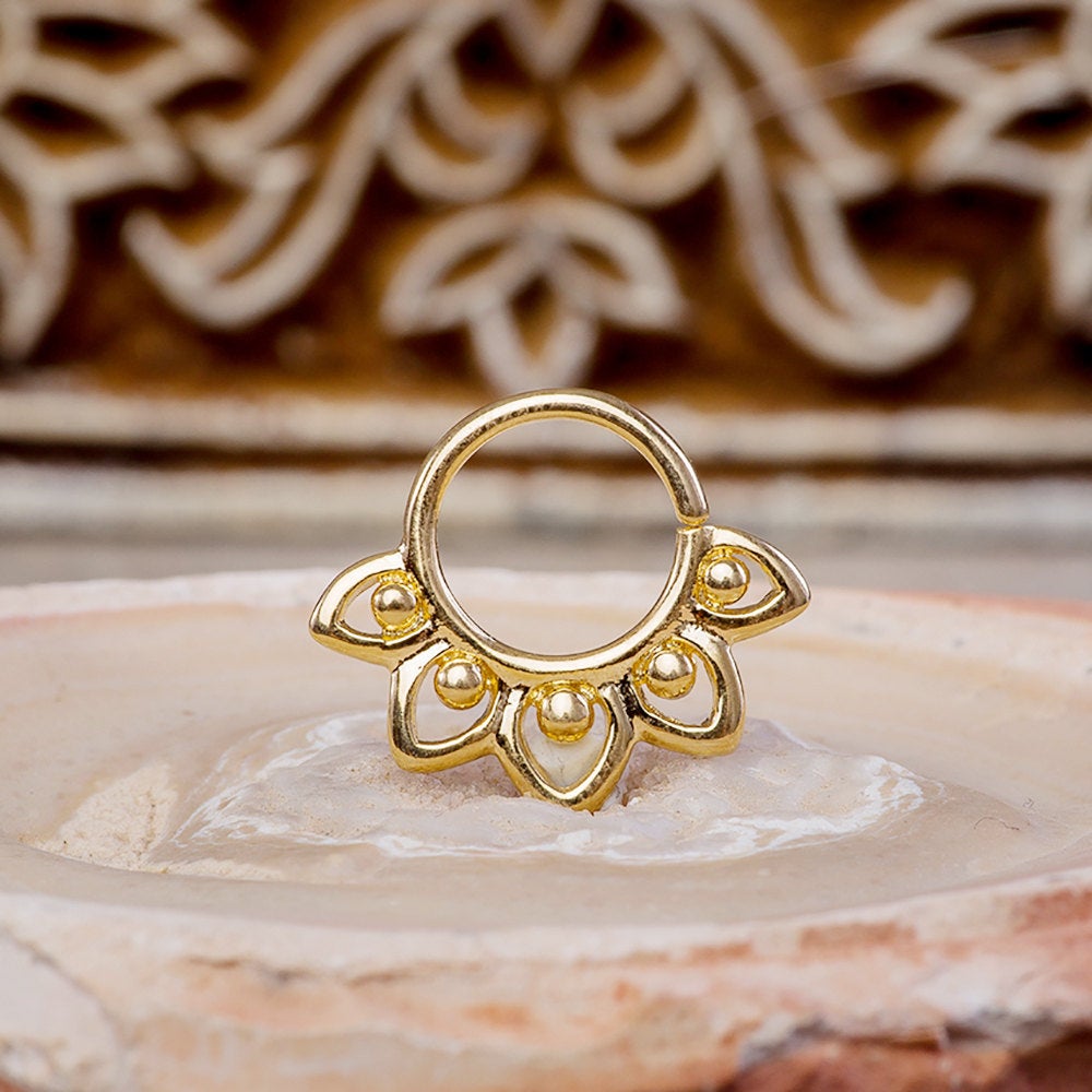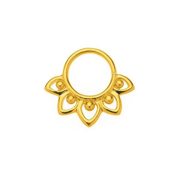 עגיל פירסינג חישוק / ספטום פרח לוטוס – עיצוב ייחודי ומרשים עם ציפוי זהב 24 קראט (על גבי כסף 925).